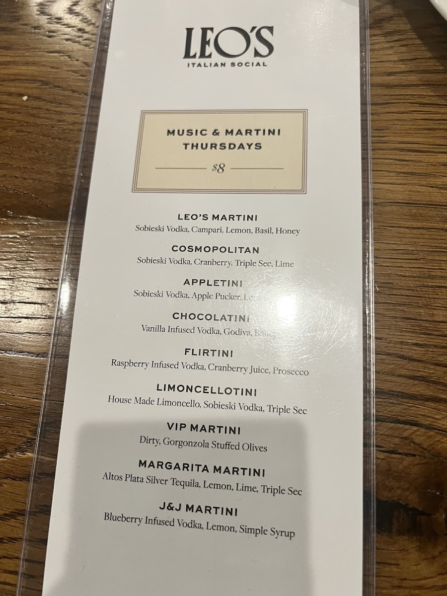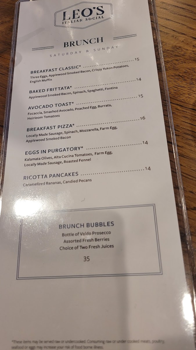 For brunch enthusiasts, Leo’s Italian Social also offers a delightful selection of brunch beverages, including refreshing Mimosas ($8) and the innovative Art of FourPlay cocktails ($15) that promise to elevate your brunch experience.